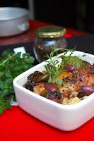 1.Roast your tomatoes at 400F till all of the juices burst out, remove from oven. I used those Campari tomatoes on the vine, cut in half drizzled with olive oil, S&P.