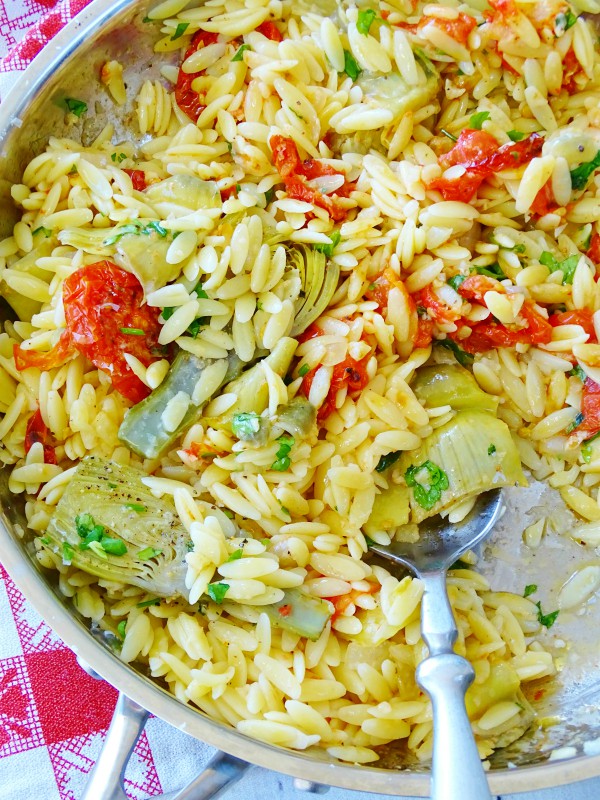 Now let’s talk about the vinaigrette, I like to make it in a small mason jar by adding 1 part red wine vinegar to 3 parts of your best olive oil, add in 1 teaspoon of mayo (yes mayo) a pinch of oregano, salt and pepper then shake, shake, shake. That’s it! Just spoon it all over and serve immediately.