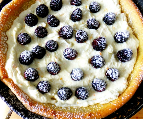 Puff Pancake with Fresh Blackberries, Mascarpone and Ricotta Cream