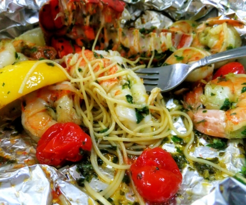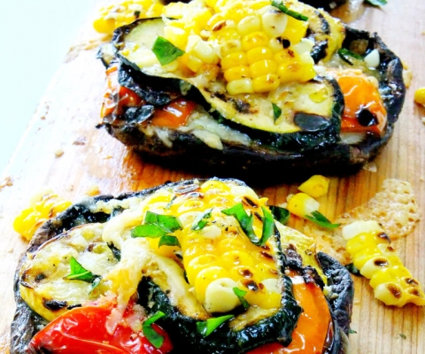Cedar Planked Grilled Portobellos Stuffed with Summer Veggies
