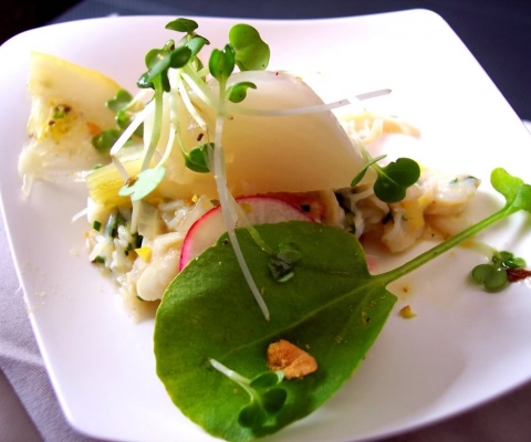 Almond Crepes, Pan Roasted Strawberries and Amaretto Sabayon