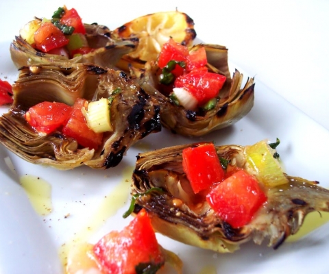Grilled Baby Artichokes with Tomato Basil Salsa