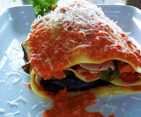 Deconstructed Grilled Veggie Lasagna w/ Romesco Sauce