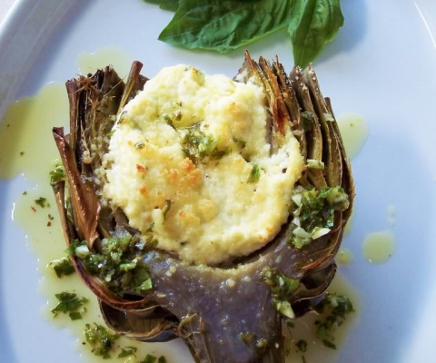 Ricotta Stuffed Artichokes with Lemon Herb Oil