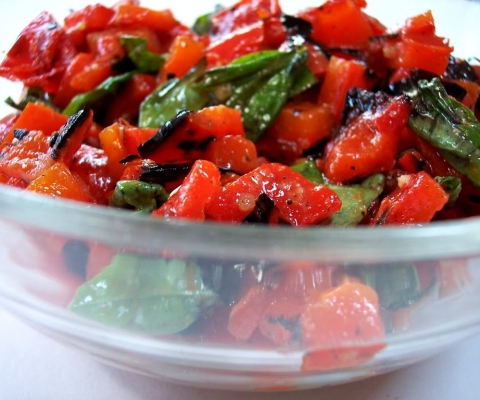 Balsamic and Herb Grilled Chicken Breasts with Roasted Red Pepper and Basil Salsa!!