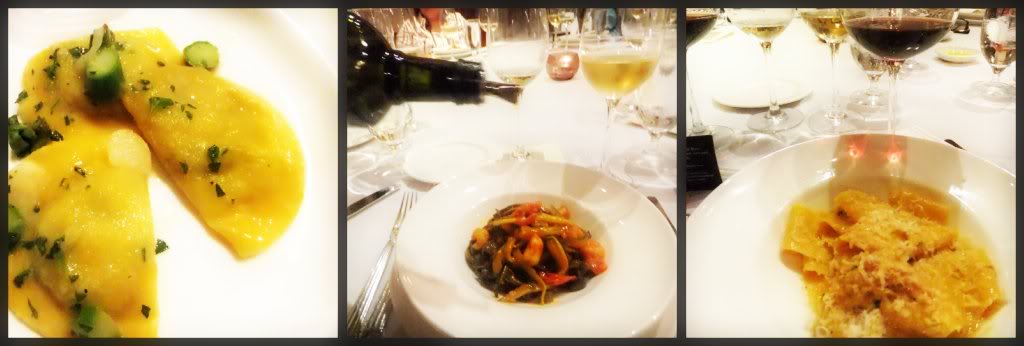 Then came the pasta, Mezzelune Gorgonzola, handmade half moon pasta, gorgonzolla filled, asparagus sauce. Tagliolini Neri, black squid ink pasta, rock shrimp, zucchini, tomato, chilles and basil. Pappadelle al Coniglio, homemade wide flat noodles, braised rabbit, white wine, aromatic vegetables, thyme.