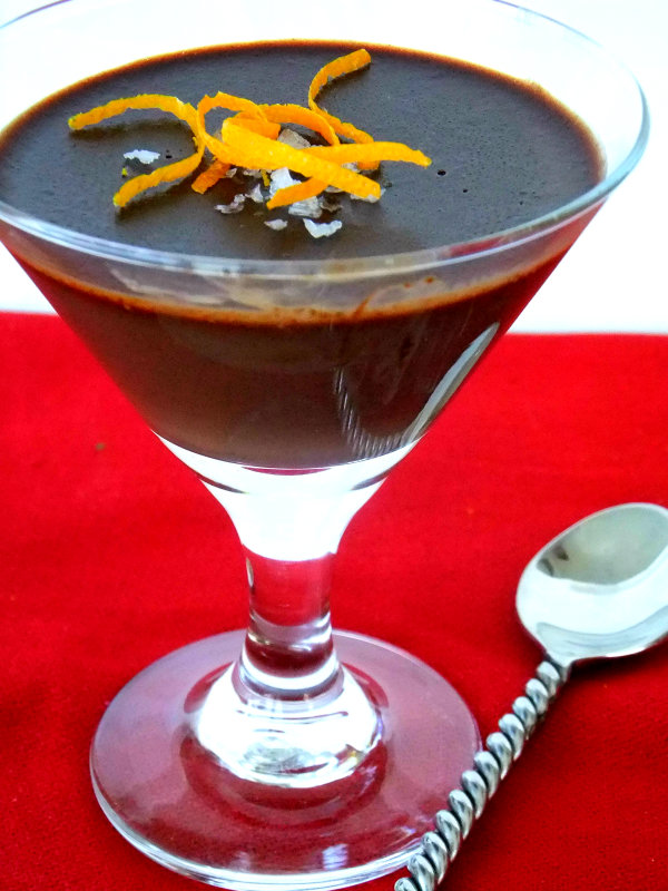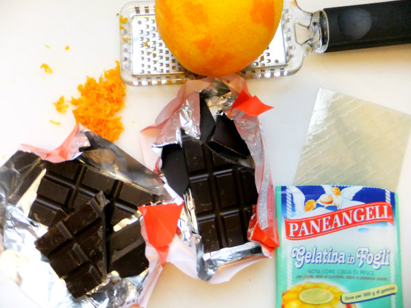 I decided to make a panna cotta using my two favorite flavor combinations, chocolate and orange. Panna cotta means “cooked cream” it’s a very simple and luxurious dessert to make with just a few ingredients. All you have to do is simmer cream and sugar together, mix in some flavors and add gelatin to make it set.